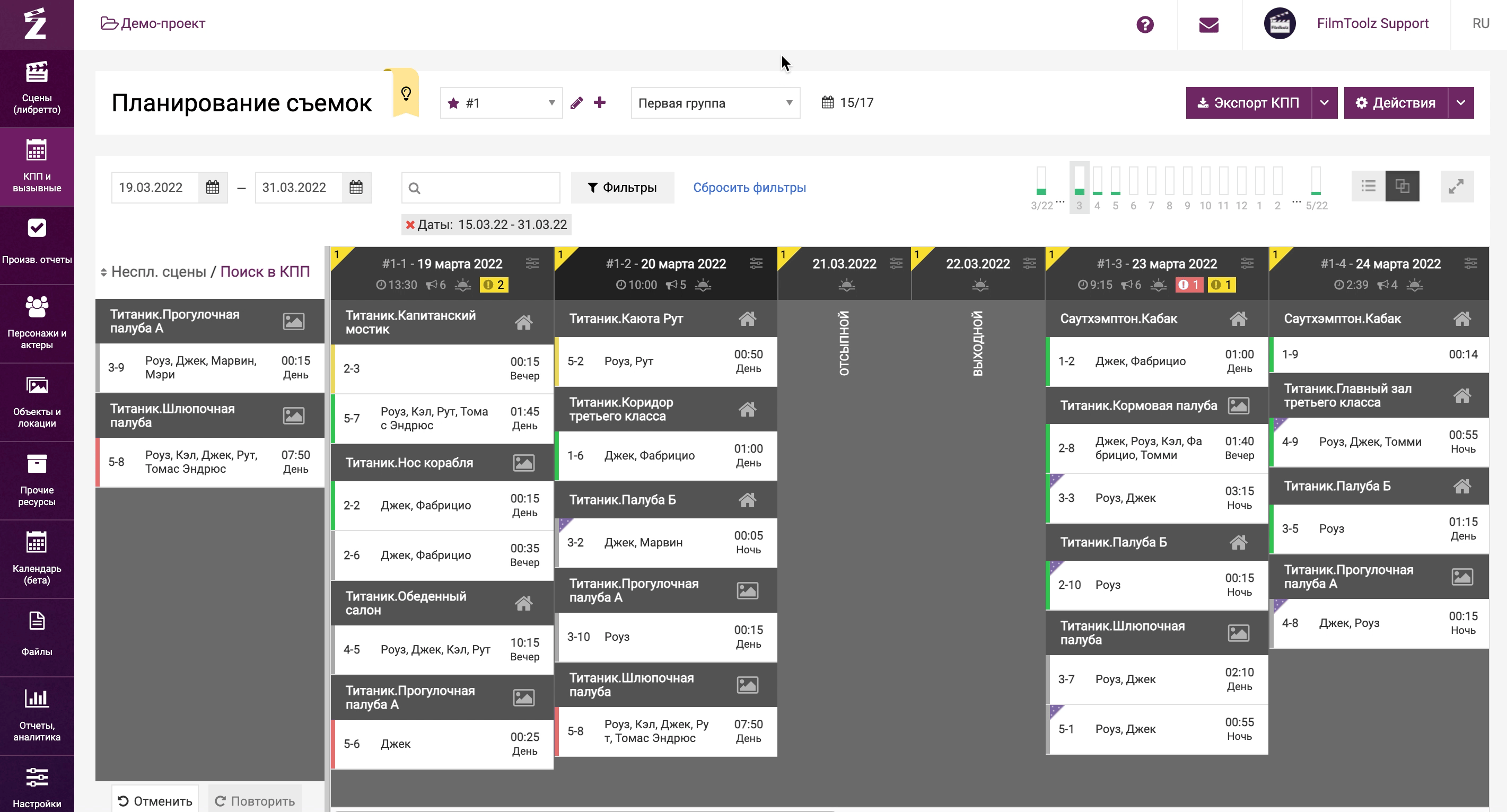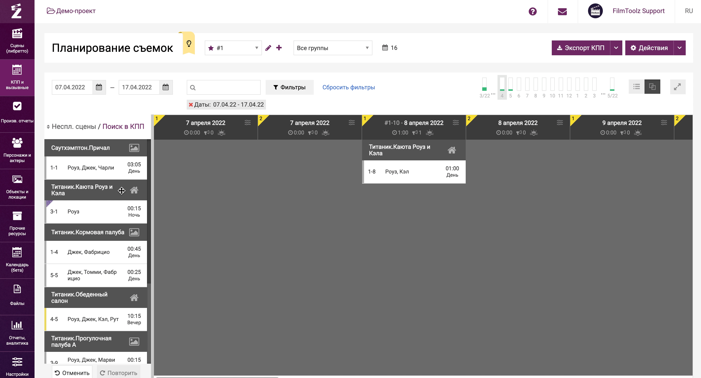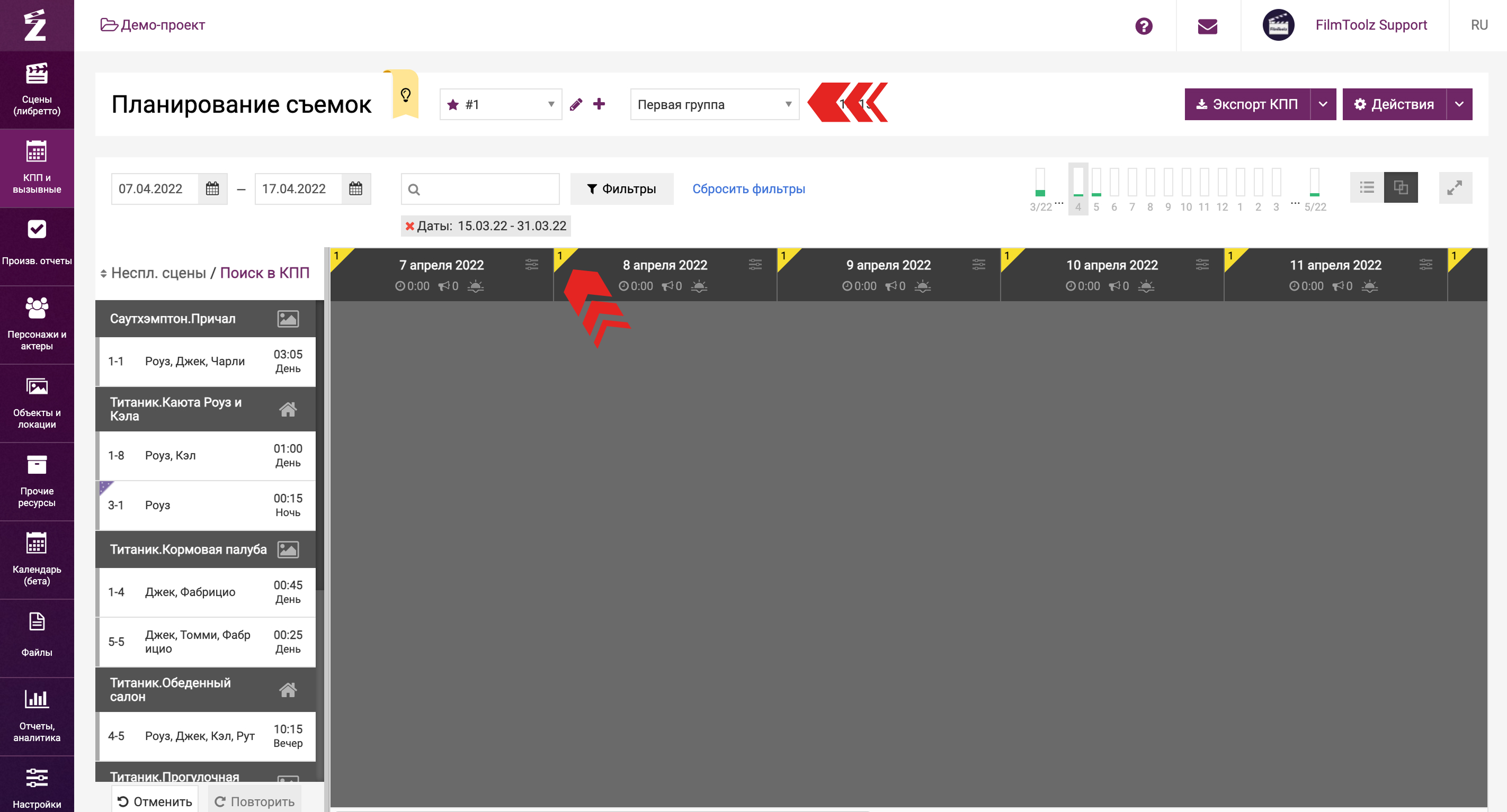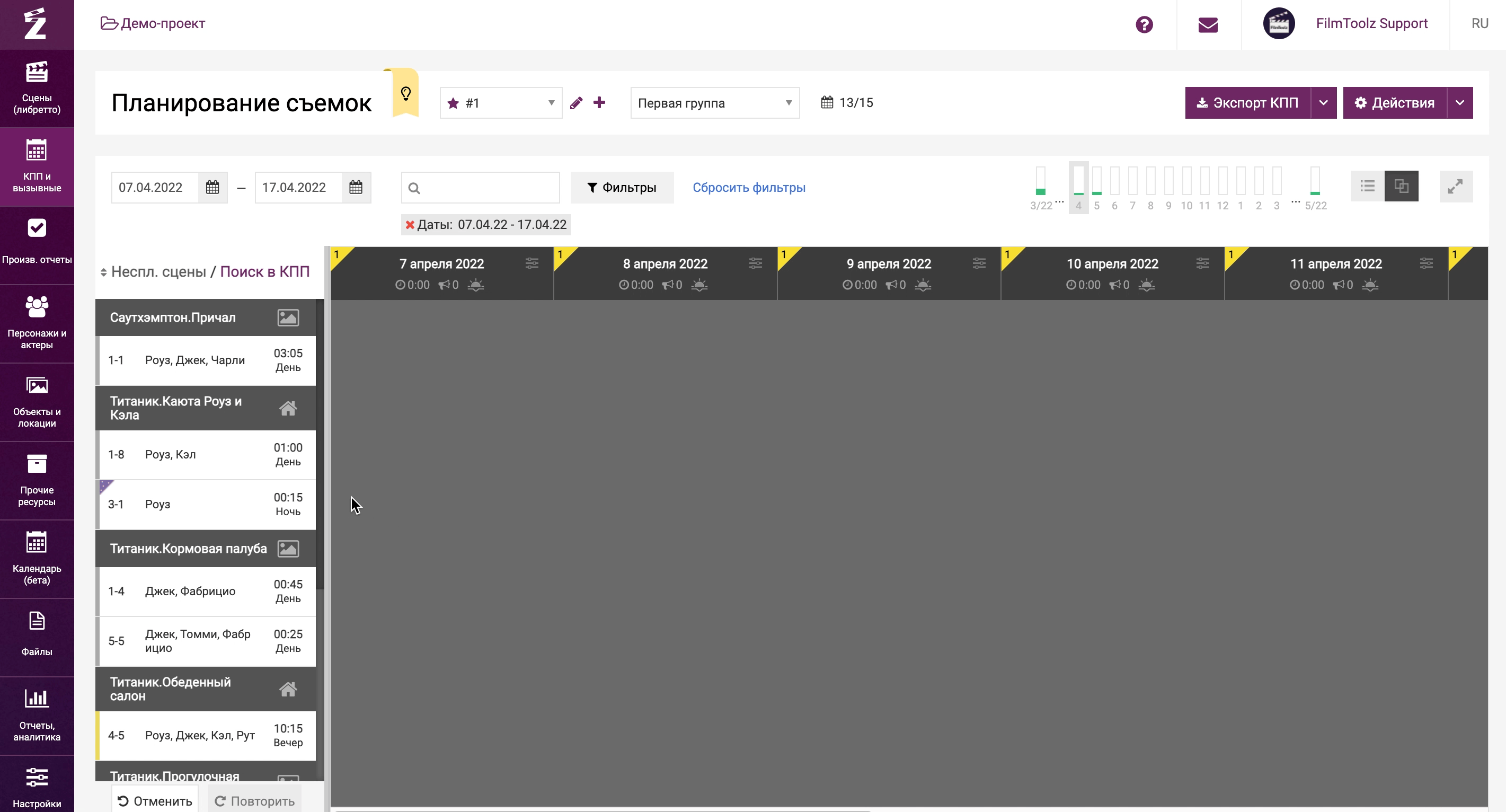 Продолжить планирование и составить вызывной для каждой из съемочных групп вы сможете, перейдя в пункт «Вызывной».