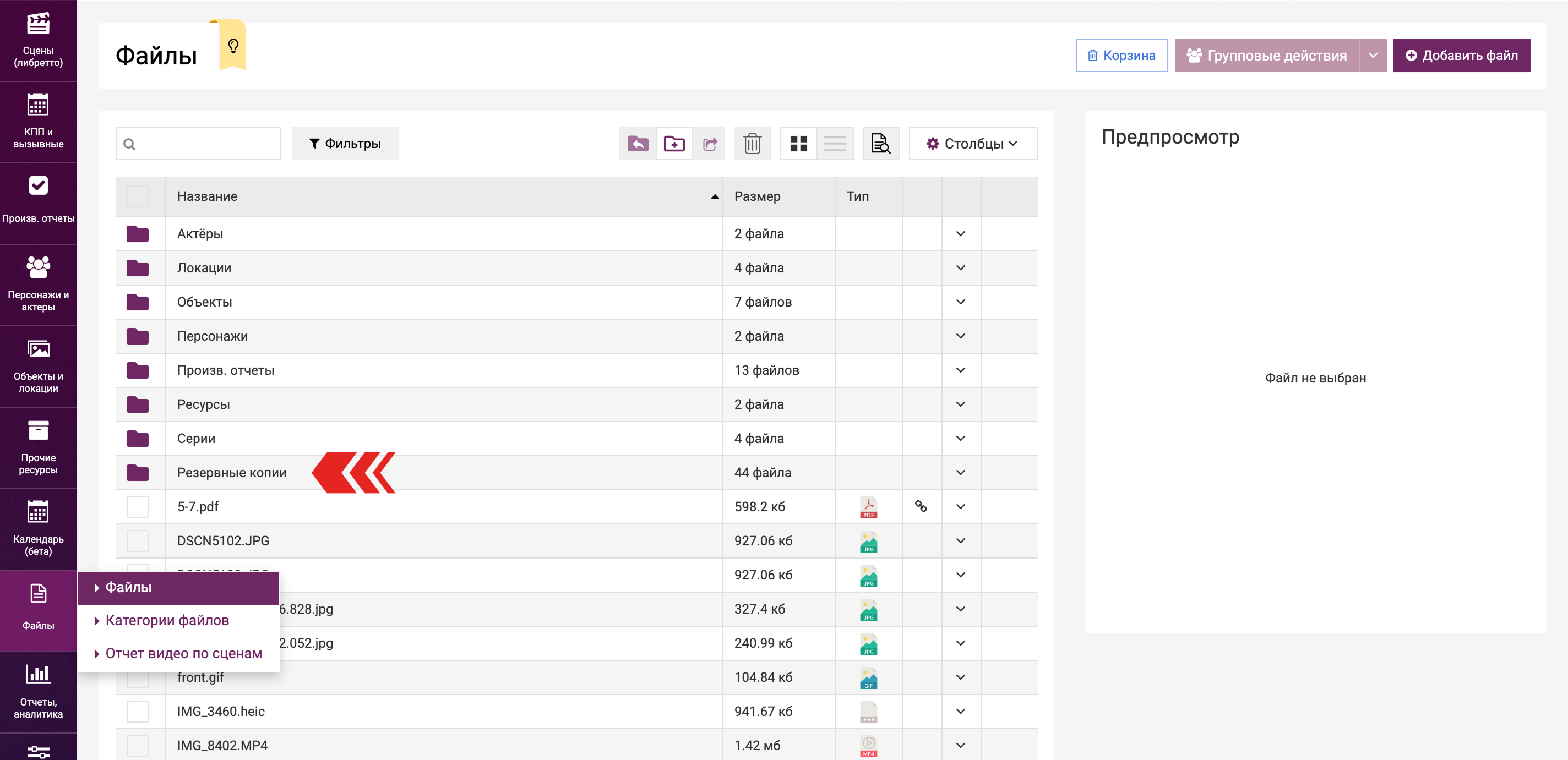 Если ваш проект снимается на пленку, отметьте это в настройках и укажите тип пленки, на который будет производиться съемка. Это позволит системе автоматически конвертировать плановый и фактический хронометраж из минут в метры и включать данный показатель в отчеты.