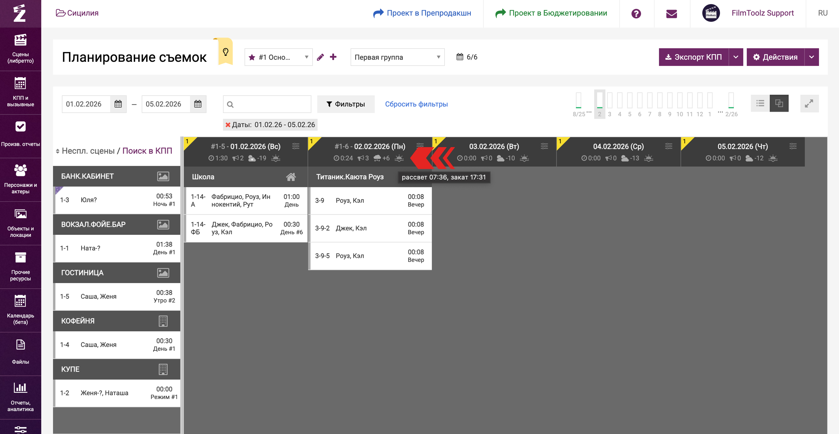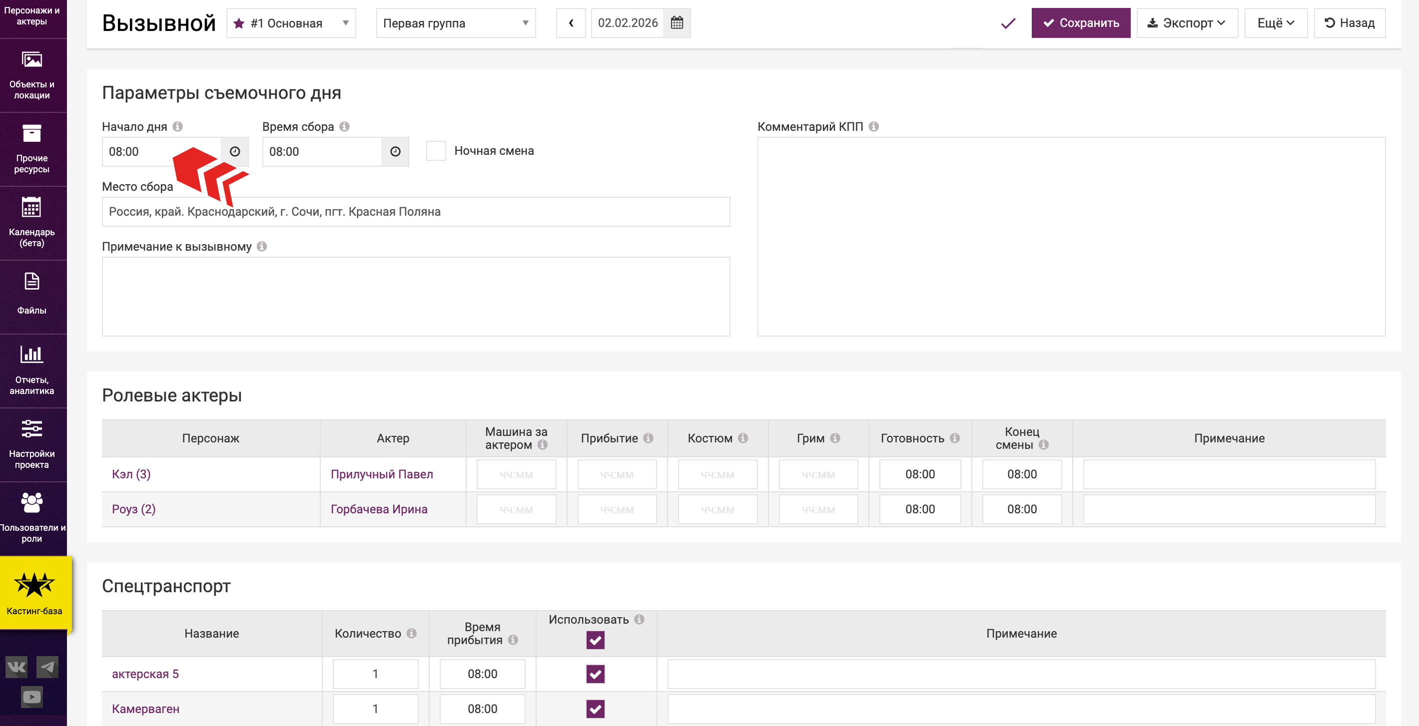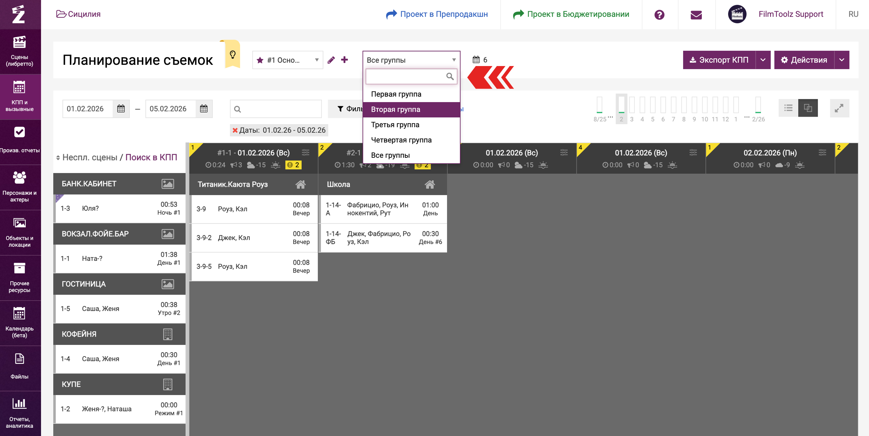 Параметр «Количество съемочных групп» позволяет вести планирование в КПП, составлять вызывные и получать производственные отчеты в разрезе каждой группы в отдельности.