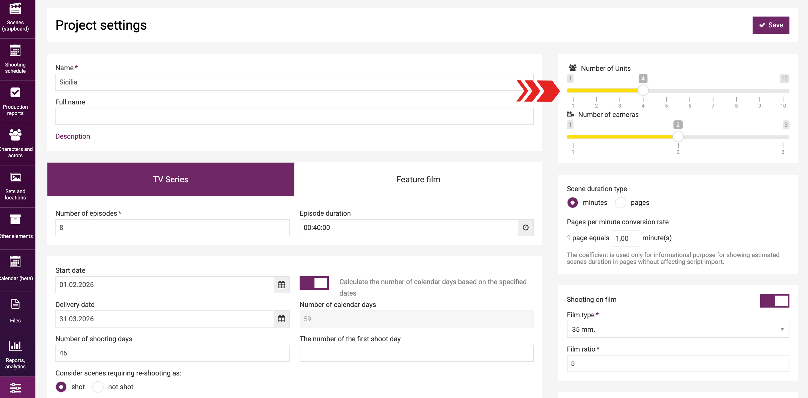 We've increased the number of Units for Shooting schedule to 10.